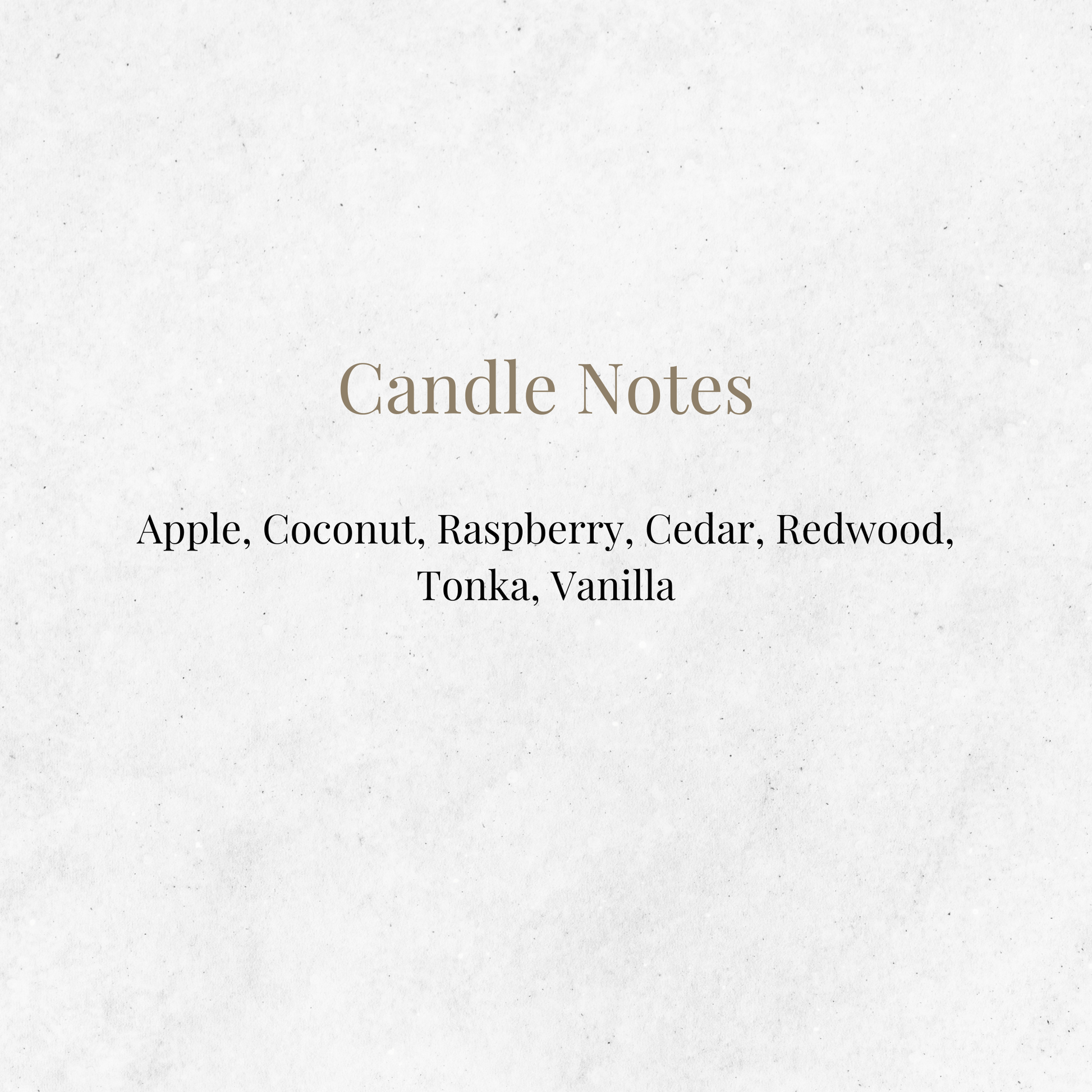 * Rose, Coconut, Raspberry, Cedar, Redwood, Tonka, Vanilla.
